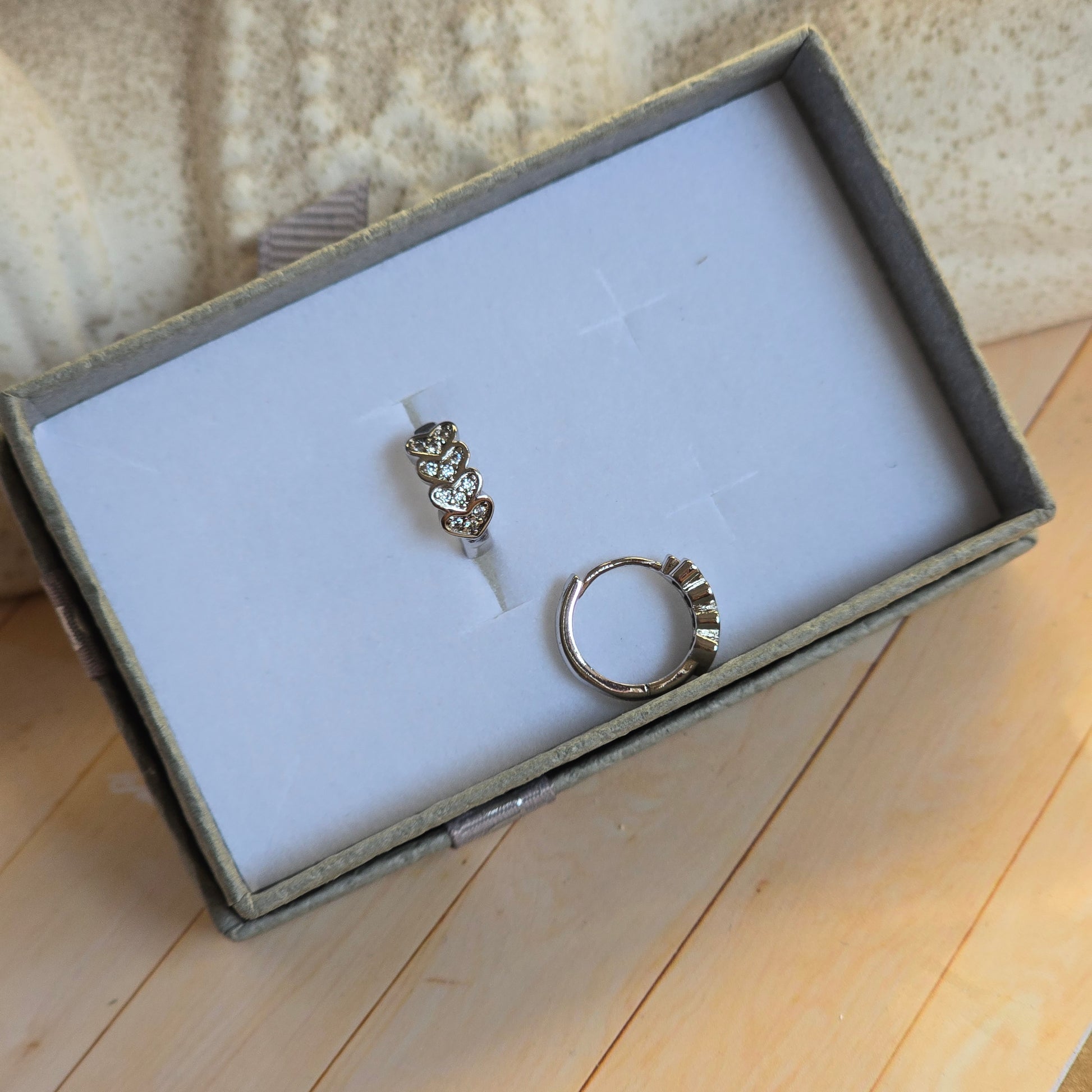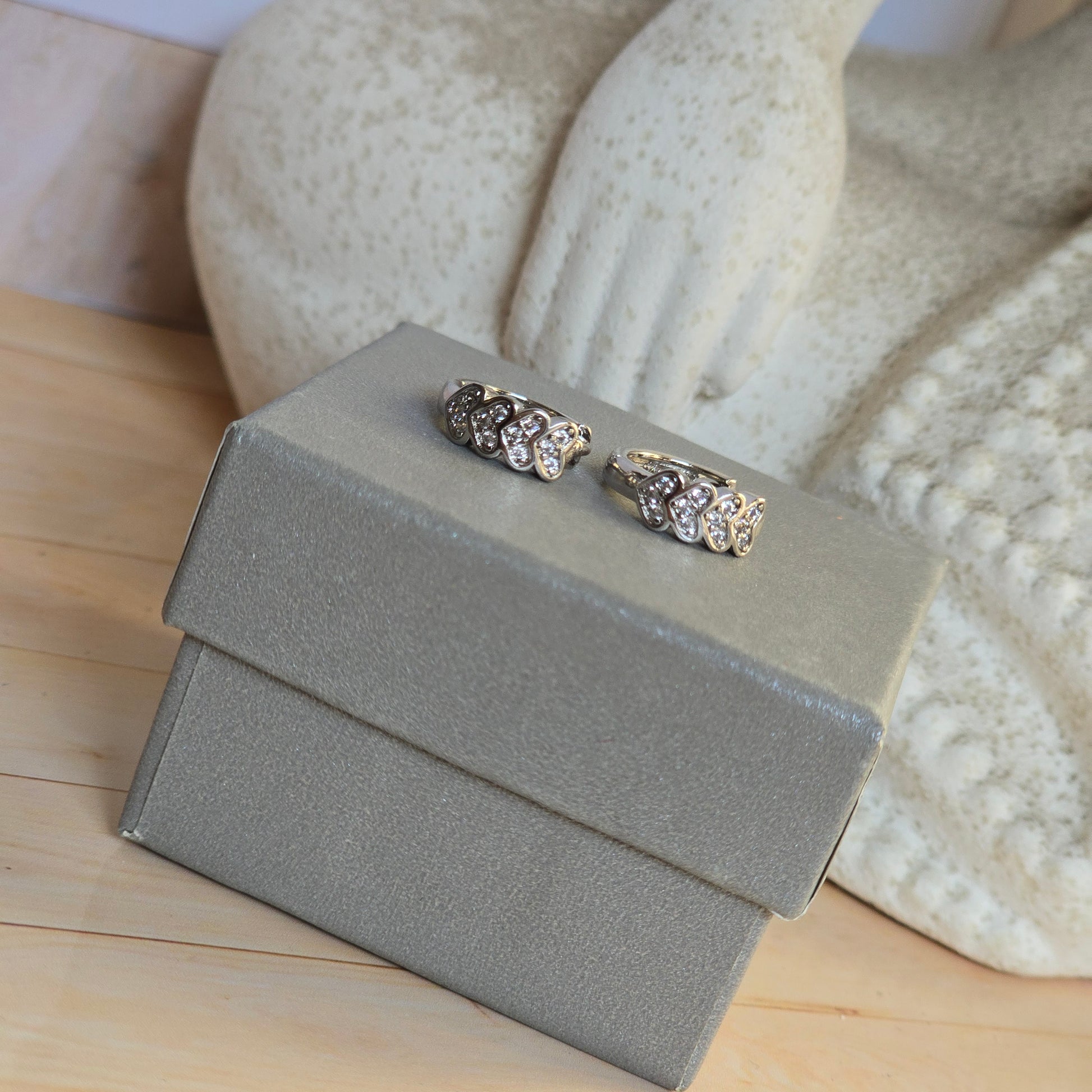 Laminados en platino, con delicadas incrustaciones de circonias en color blanco que aportan un brillo fino y sofisticado.