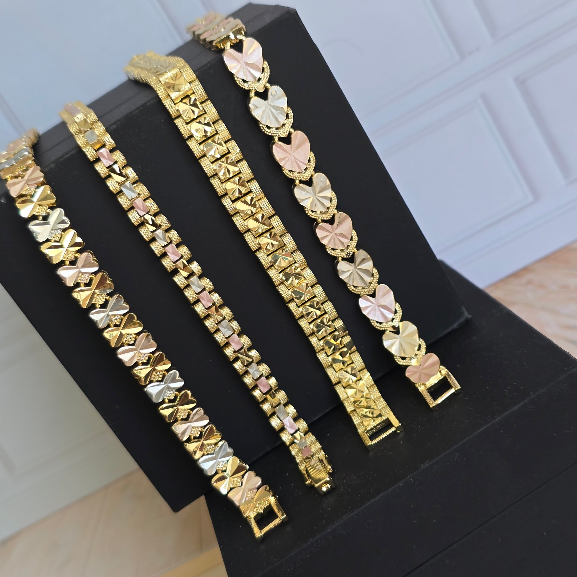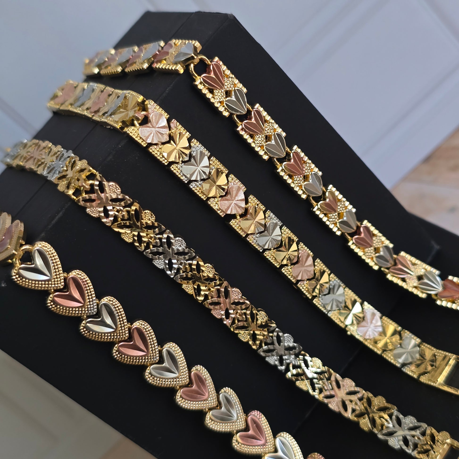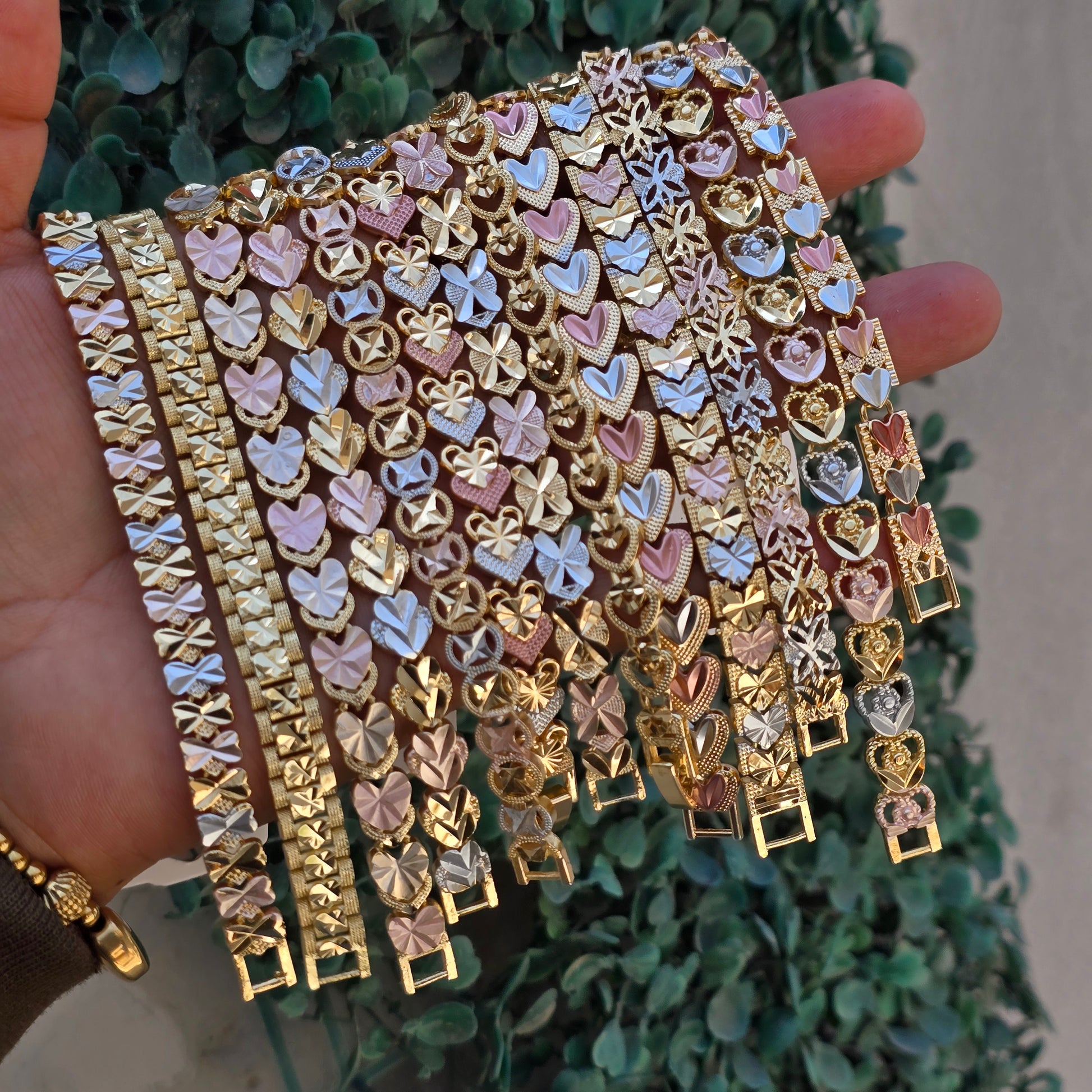 Descubre nuestras pulseras florentinas con delicados diseños de corazones martillados y mullidos, elaboradas con un elegante acabado en tonos oro, oro rosado y plata que aportan brillo y estilo a cualquier look. Su diseño detallado y moderno las convierte en el accesorio ideal para uso diario o para ocasiones especiales.