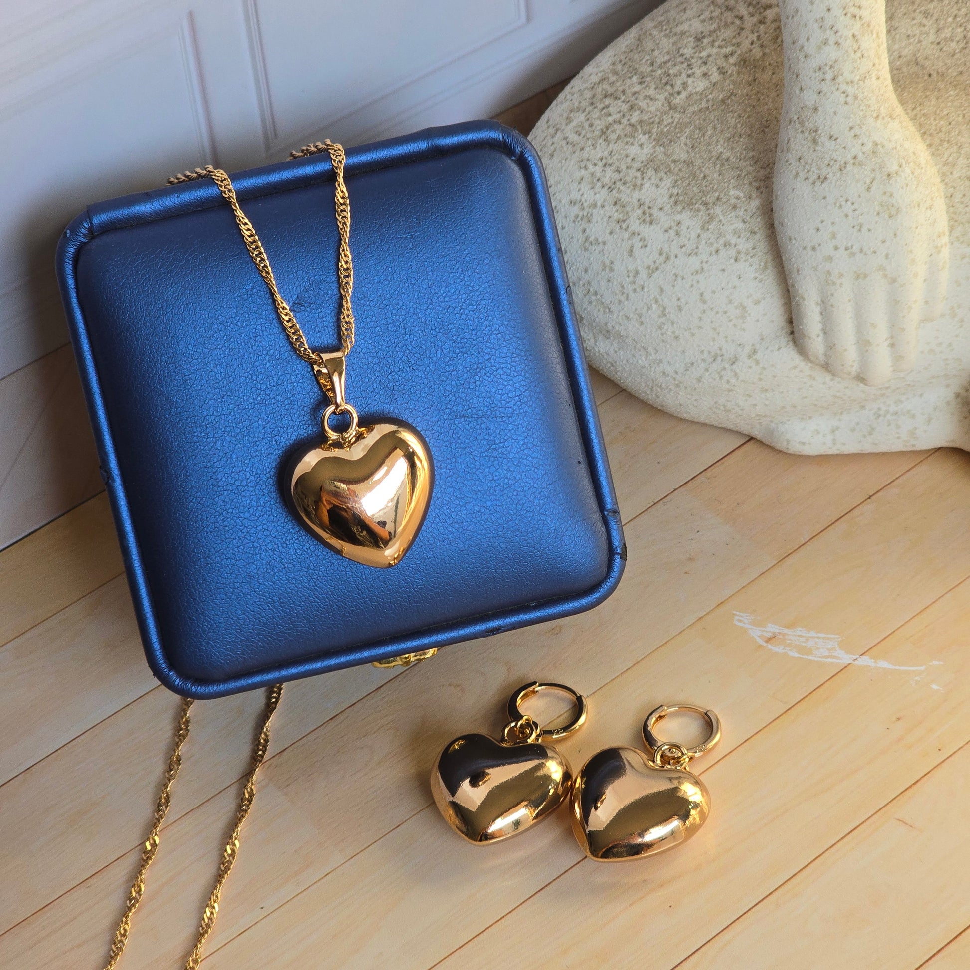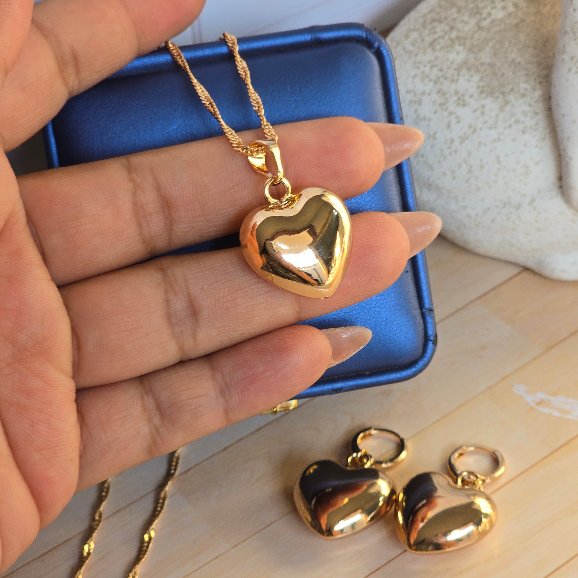Laminado en oro de 18 kilates, incluye dije, cadena y hoops a juego.